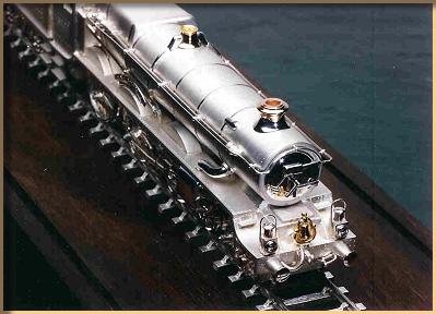 Here we have a rather unique museum piece. This sterling silver replica of King George V is a faithful scale model of the locomotive, constructed from drawings of the prototype at the time of building. It was entirely hand-made over a period of 6 years by craftsmen in Jersey. The two major builders involved were goldsmiths Derek Uren and Richard Blampied. Other work was carried out by engraver Keith Ainsworth and goldsmith Aaron Bowey.