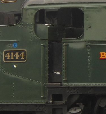 Prior to the availability of the first lion and wheel crests, some large Prairies were outshopped in unlined green, with GWR style numerals on their bufferbeams, and a small (2") white W under the cabside numberplate. The 'W' was applied between January and late March/early April 1948, and it is thought about 150 or so GWR engines received it.
