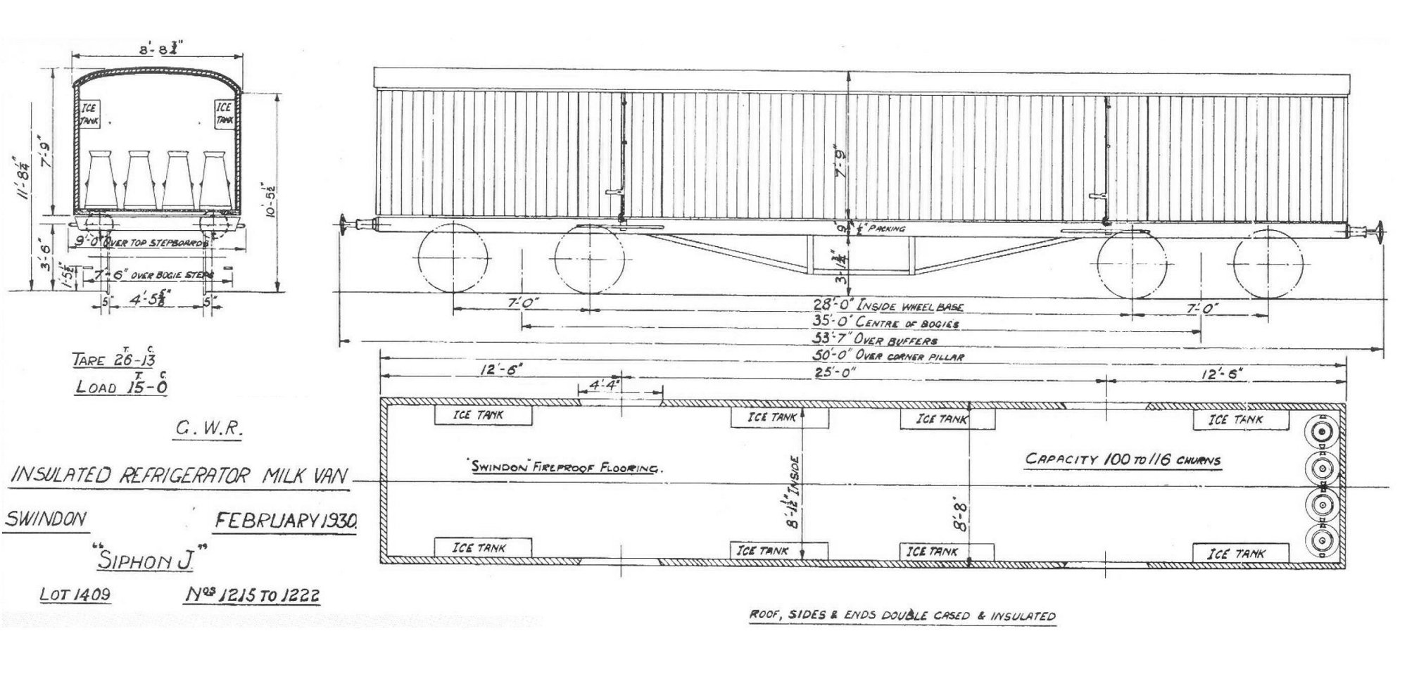The longer and later bogie Siphons, e.g. diagrams O11 and O12, could in theory accomodate many more churns per vehicle, but an official 1930 drawing of an insulated Siphon J specifies the loading capacity to be "100 to 116 churns".
